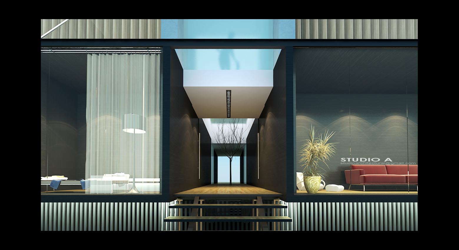 El diseño se muy elegante, me gusta. Lo único que veo son los escalones de madera de la entrada, quizás la textura demasiado estirada o no sé. Enhorabuena por tu trabajo.