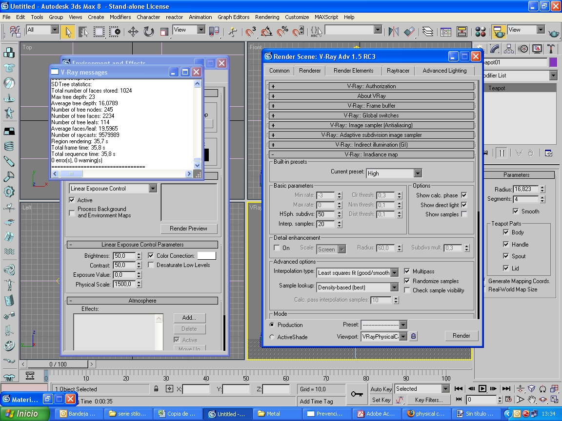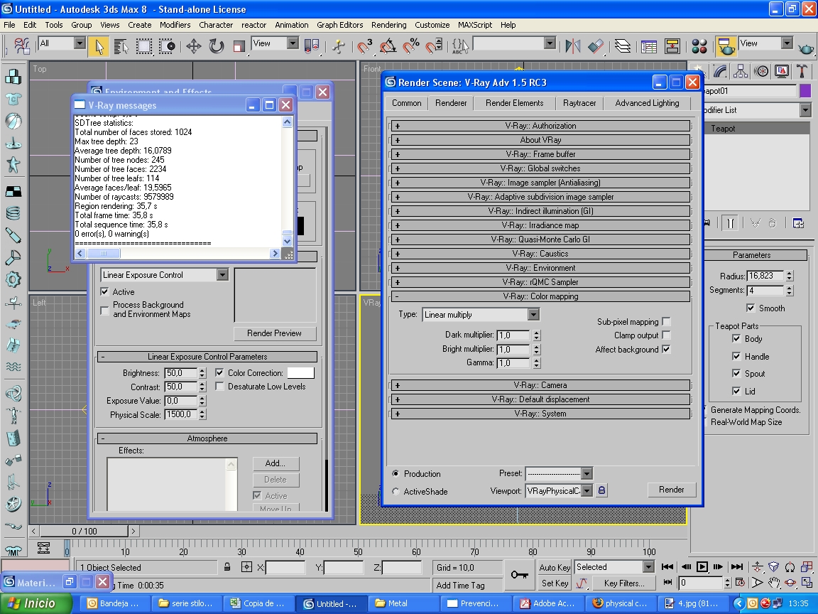 He hecho muchísimos render, y he cambiado mil veces los parámetros de la Physical Camera, he jugado con el Shutter Speed(velocidad), con el diafragma (f-number) y con la ISO, pero no logro captura bien la imagen, me sale negra y cuando la pongo clara con la apertura del diafragma en números bajos, la fotografía pierde mucha calidad, además el render me tarda muchísimo, puede ser todo esto porque no tengo calibrado el monitor, es que no tengo hardware para hacerlo, he usado todos los parámetros de LightWave, no sé, estoy bastante liado, a ver si me podéis orientar sobre cómo colocar la cámara, porque puede estar ahí el error, gracias.