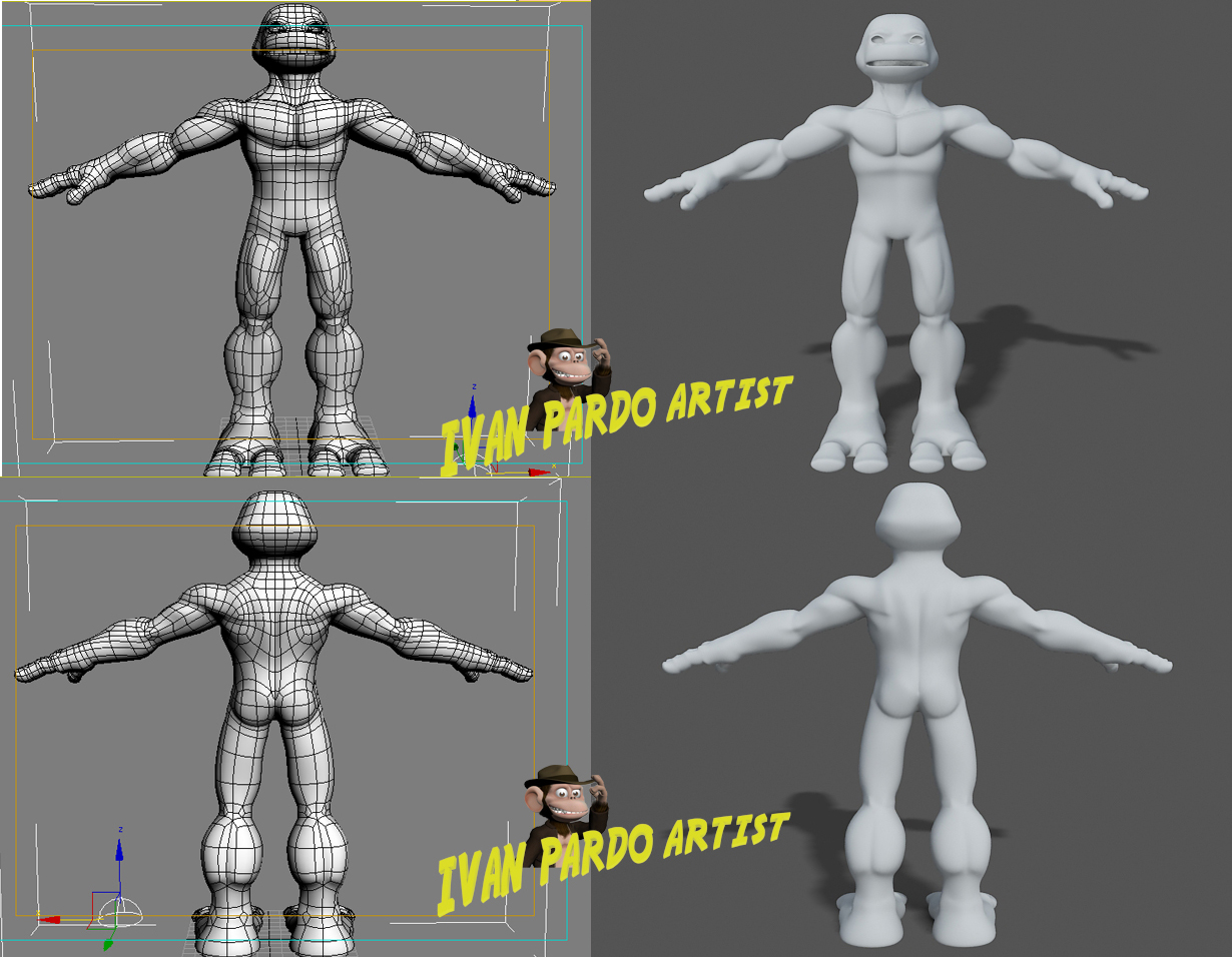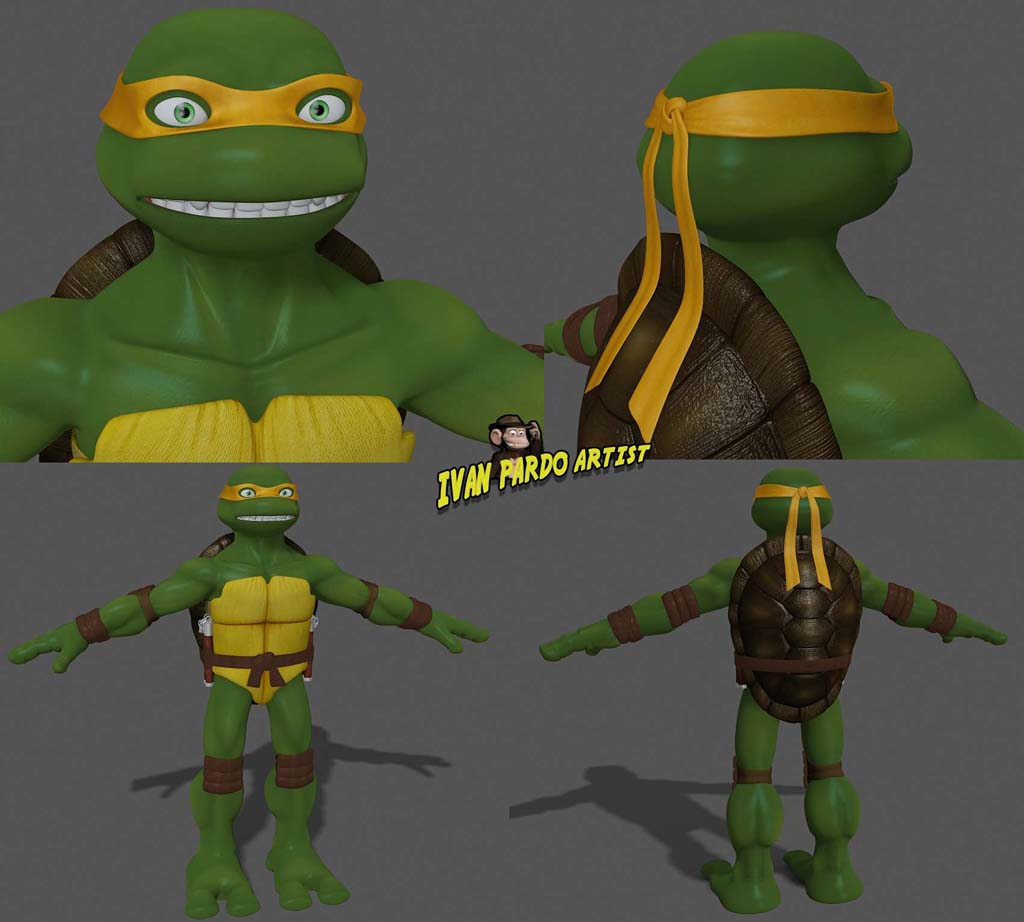Señor me quitaste la idea, hace mese que tenía planeado hacer una tortuga ninja, el resultado de tu modelo me sorprendió el trabajo de texturas y está muy bien, pero algo raro veo en los dedos, se ven muy cuadrados, pero felicitaciones lograste lo que quizás no hubiera logrado (por lo menos la posición ya que recién me estoy metiendo en Bones y esas cosas). Saludos.