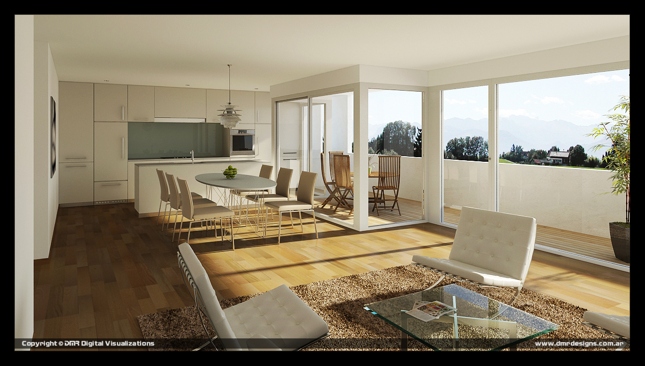 Bueno antes que nada gracias por comentar, con respecto al mobiliario, es elección del cliente, solo me encargue del modelado, texturizado e iluminación. Estoy de acuerdo contigo de que hay cosas que cambiaría, pero el cliente manda. Saludos y gracias nuevamente.Me gusta la iluminación, sobre todo de la primera, y las butacas Barcelona siempre son una buena opción, yo las uso muchísimo.