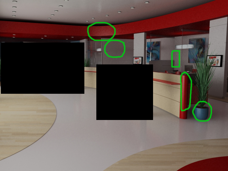 Vray. (por eso, por ejemplo, no se ven bien las separaciones entre los paneles de las columnas que van al techo rojo.)