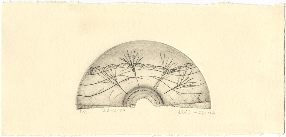 Técnicas: grabado a punta seca e inmersión en ácido férrico.