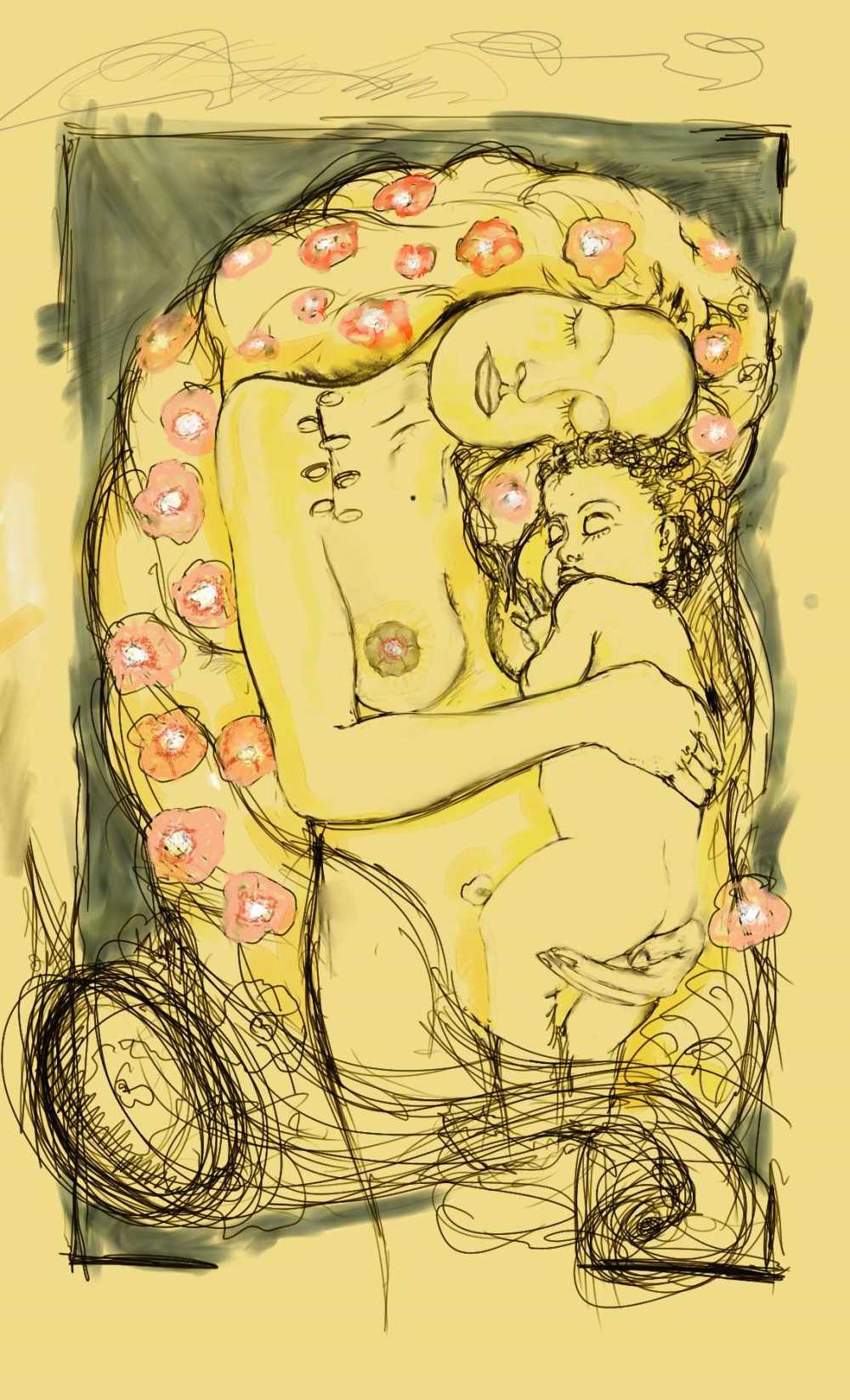 Me gusta mucho, es diferente, yo no conozco a fondo la técnica del grabado, pero entiendo que la has realizado con ese método? O quizá algo similar? Tiene a la vez cierta sutileza pues la imagen se dibuja tenuemente, excelente.