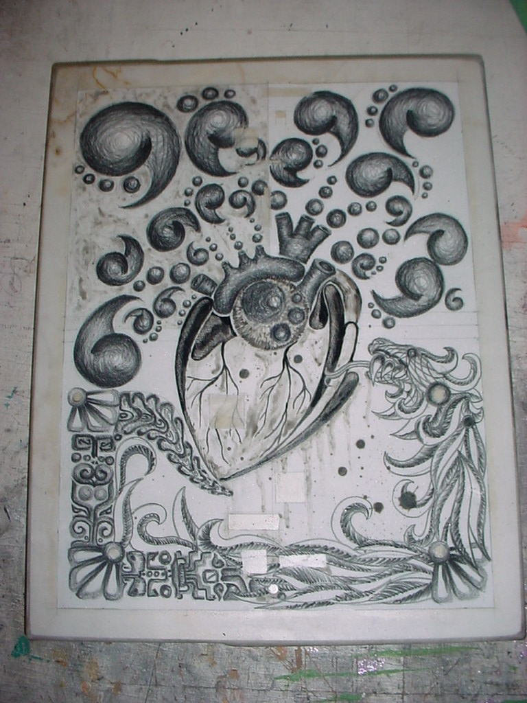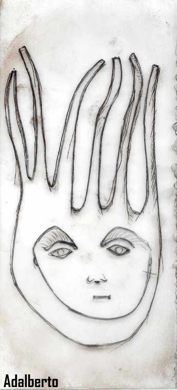 Este sería el 5º o 6º grabado que hice, por entonces (hace casi 5 años) yo no conocía el aguafuerte (ni ninguna de las técnicas posibles), así que, decidí hacerlo a lo bestia, rayando a saco, igual que los anteriores.