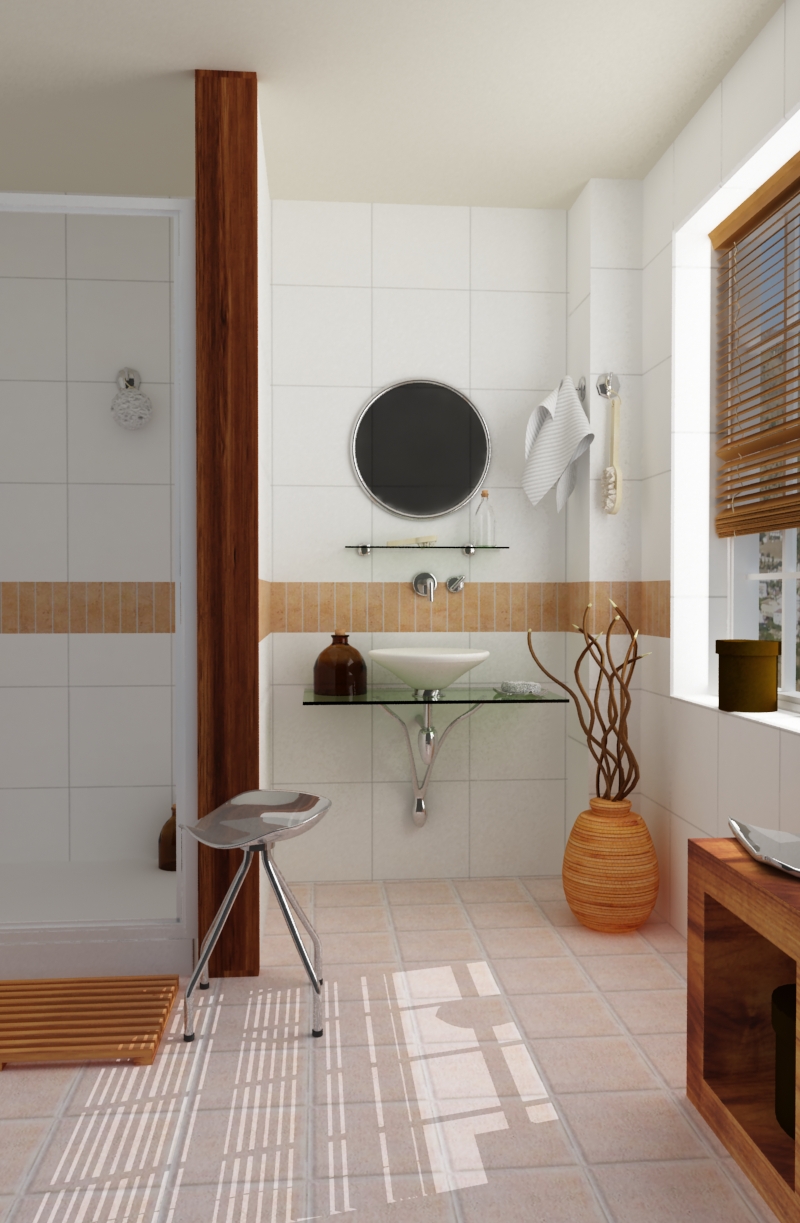 Para ser el primer trabajo que haces está genial. Unas cosas que veo yo, en las paredes haz coincidir las líneas de los azulejos, cuando se descuadran a no ser que sea intencionado, dan una sensación extraña.