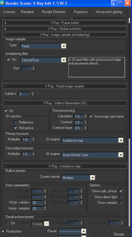 Me podrías ense;ar los parámetros de Vray. Gracias.