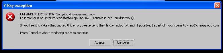 Hola a todos/as: Soy nueva en el foro y estoy un poco verde. Tengo un problema con Vray dispongo de 2 ordenadores exactamente iguales y uno me renderiza fenomenal, pero el otro con el mismo trabajo me sale este error.