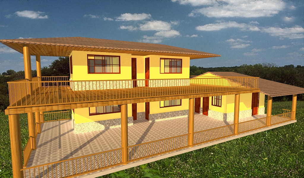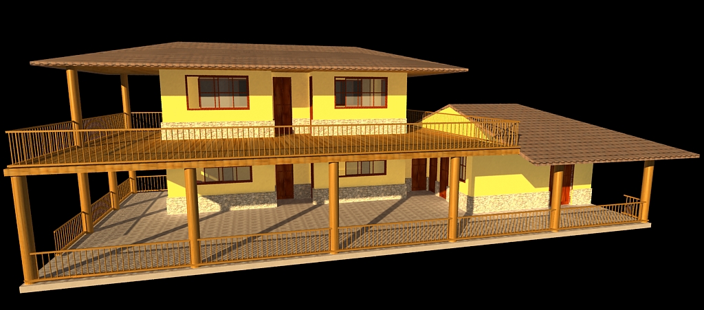 Estoy tratando de diseñar una casa para el campo o finca para una prima y es lo más cerca que he llegado. Faltando muchas cosas, las escalas es la principal ya que no sé en qué forma hacerlas. Es un ensayo con Vray incluido.