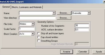 Nos vamos, desde Lightscape abierto, a file->import->dwg.