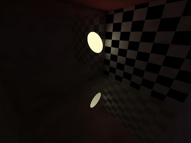 El método más avanzado y más complicado por ende, aunque más lógico y útil, es el de usar cáusticas reflexivas, es sencillo de usar, únicamente necesitas la luz que incida directamente, en paralelo o perpendicular al objeto reflexivo, y que este tenga bien aplicado el material Vray, con reflexión al 100% y activar el cálculo de cáusticas en el panel de Vray, luego todo seria jugar con los parámetros para lograr más dureza, difusión, etc.