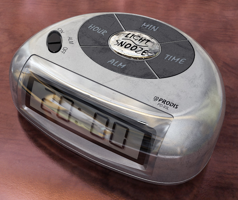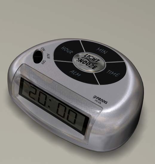 También pongo (que pesado soy) los renders del móvil y del despertador. Estoy los modele hace tiempo con Rhinoceros y renderizados con max. Lo que voy a hacer con ellos es cambiarles los materiales por materiales Vray: