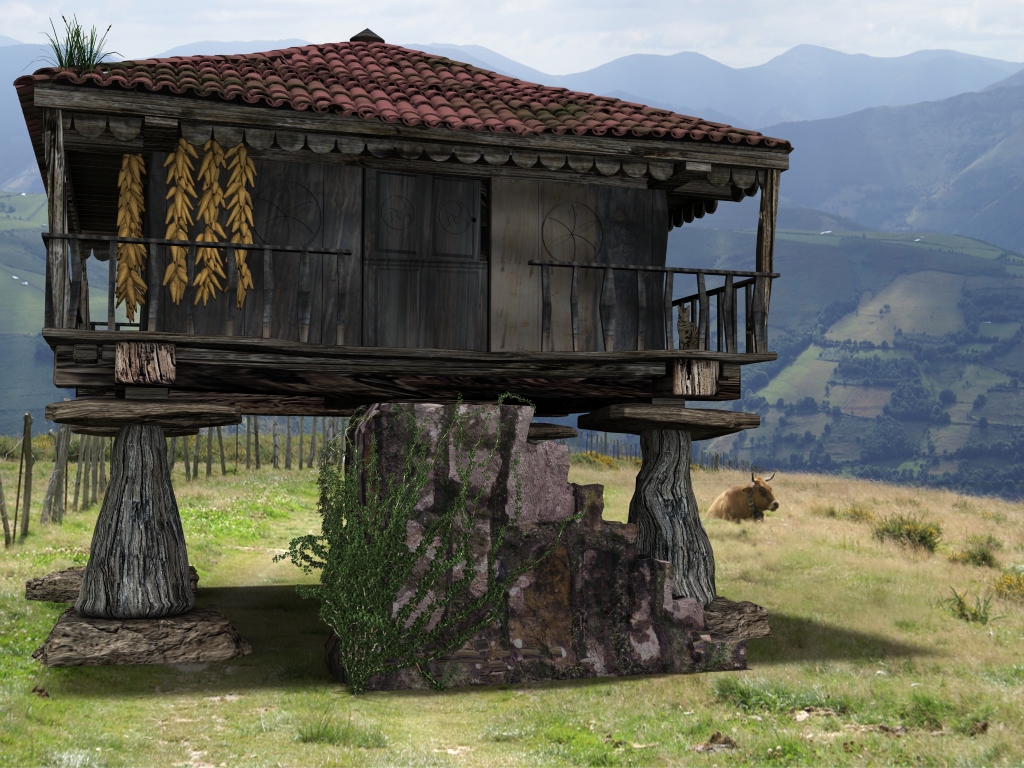 Hola a todos, aquí os dejo un horreo típico asturiano que estoy haciendo con LightWave, aunque todavía me queda trabajo, quiero enseñarlo para ver que os parece, sé que tiene fallos de texturizado, la verdad es que el tema de los UV me cuesta un poco. Bueno cuanto más me podáis decir mejor, os doy las gracias de antemano.