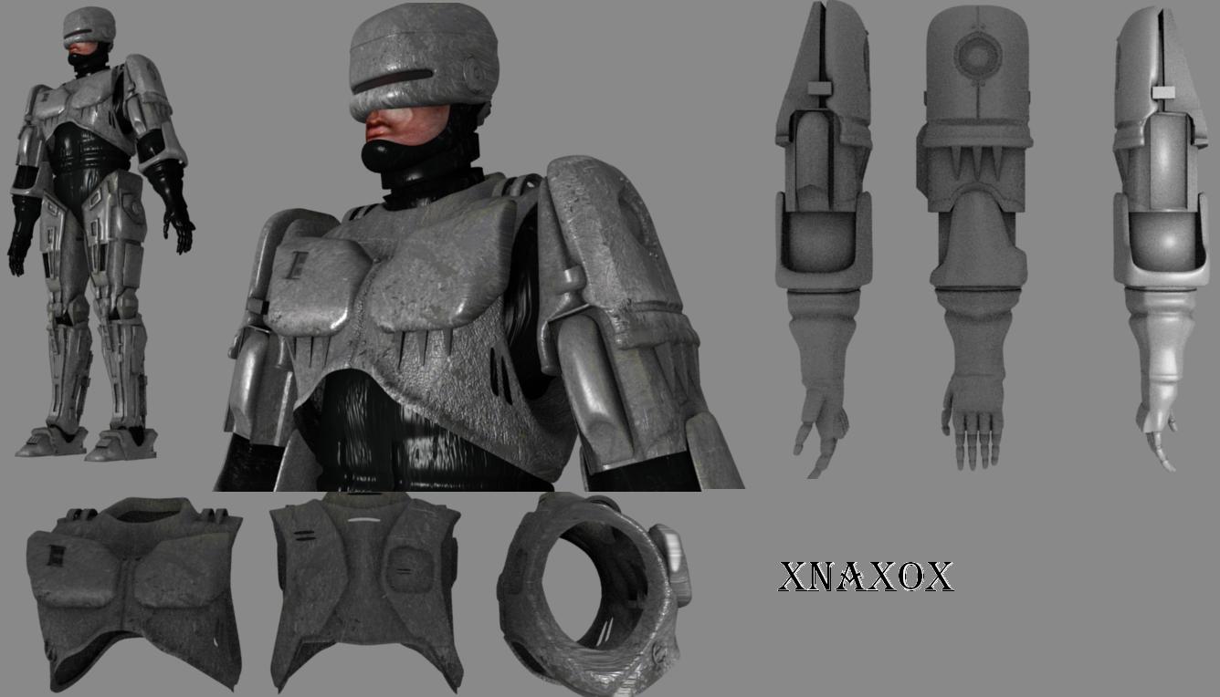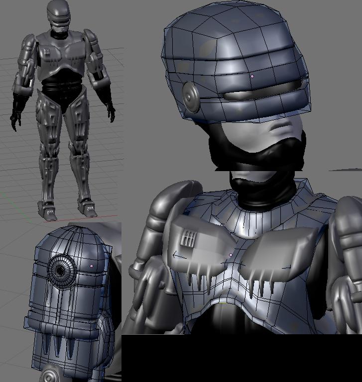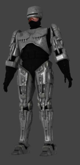 Hola, bueno este es mi trabajo más reciente, más bien es un ejercicio para verificar como voy en modelado, es Robocop, si bien el modelado por muy poco que se parezca este al original siento que ai unas falencias terribles en mí estilo de modelar que no van con como debería ser, mi objetivo de poner este tema es lograr una significativa mejora en el modelo y más realismo en las texturas y bueno por mientras dejare imágenes de lo que es este modelo.