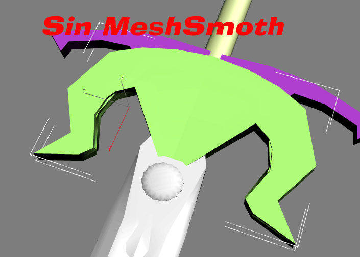 Bueno estaba modelando una esapada, y ahora quería añadirle algo de MeshSmooth, bien en la imagen de abajo verán el problema.