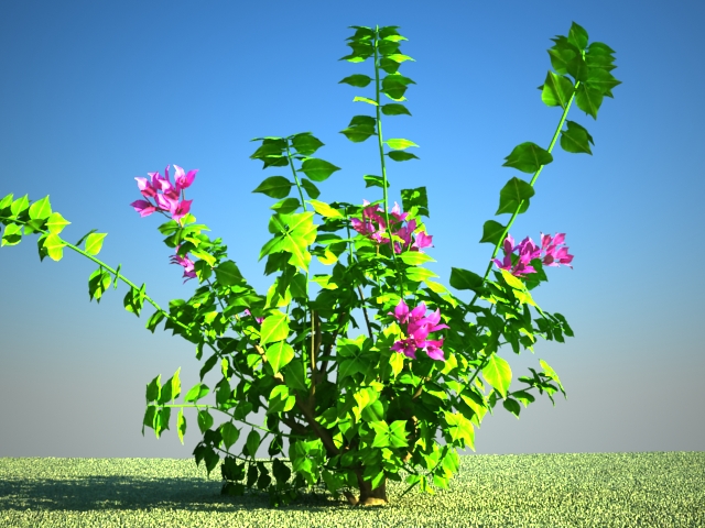 Bueno e terminado la bugambilia aquí les dejo una fotografía para que la vean, se aceptan todo tipo de sugerencias. Una pregunta más, miren el archivo del arbusto pesa 11 Mb y creo que es un poco grande cómo para manejarlo en mis escenas, alguien me podría decir cómo puedo hacer para que el archivo no este tan grande? Saludos.