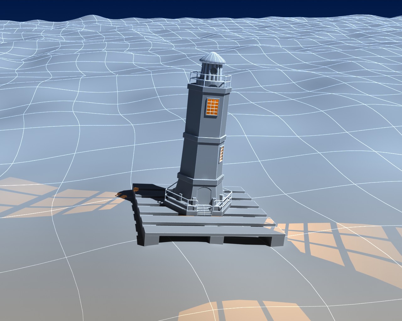 edito: ya le agruegué unos es escalones, hice el hueco para la puerta y le hice unas modificaciones a la baranda. Estoy viendo que en los pequeños escalones se notan como manchas blancas, es posible que se deba a errores de modelado? Ya revisé y no hay vértices sueltos o cosas así.