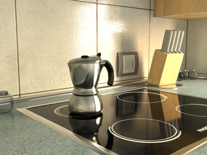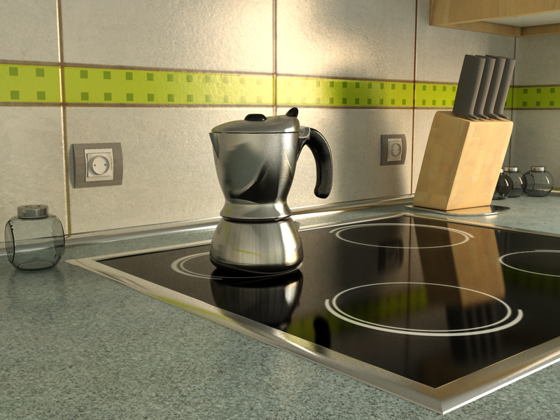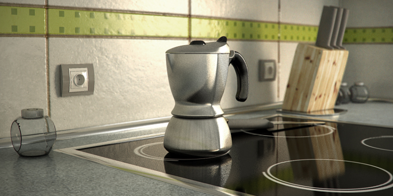 Hola a todos, hace un año dejé a medias una cafetera (la escena, no que me la bebiera a medias) que estaba haciendo para trastear con Vray. Ahora que llevo algo de tiempo con Mental Ray quería retomarla y completar la escena, a ver qué tal se me da.