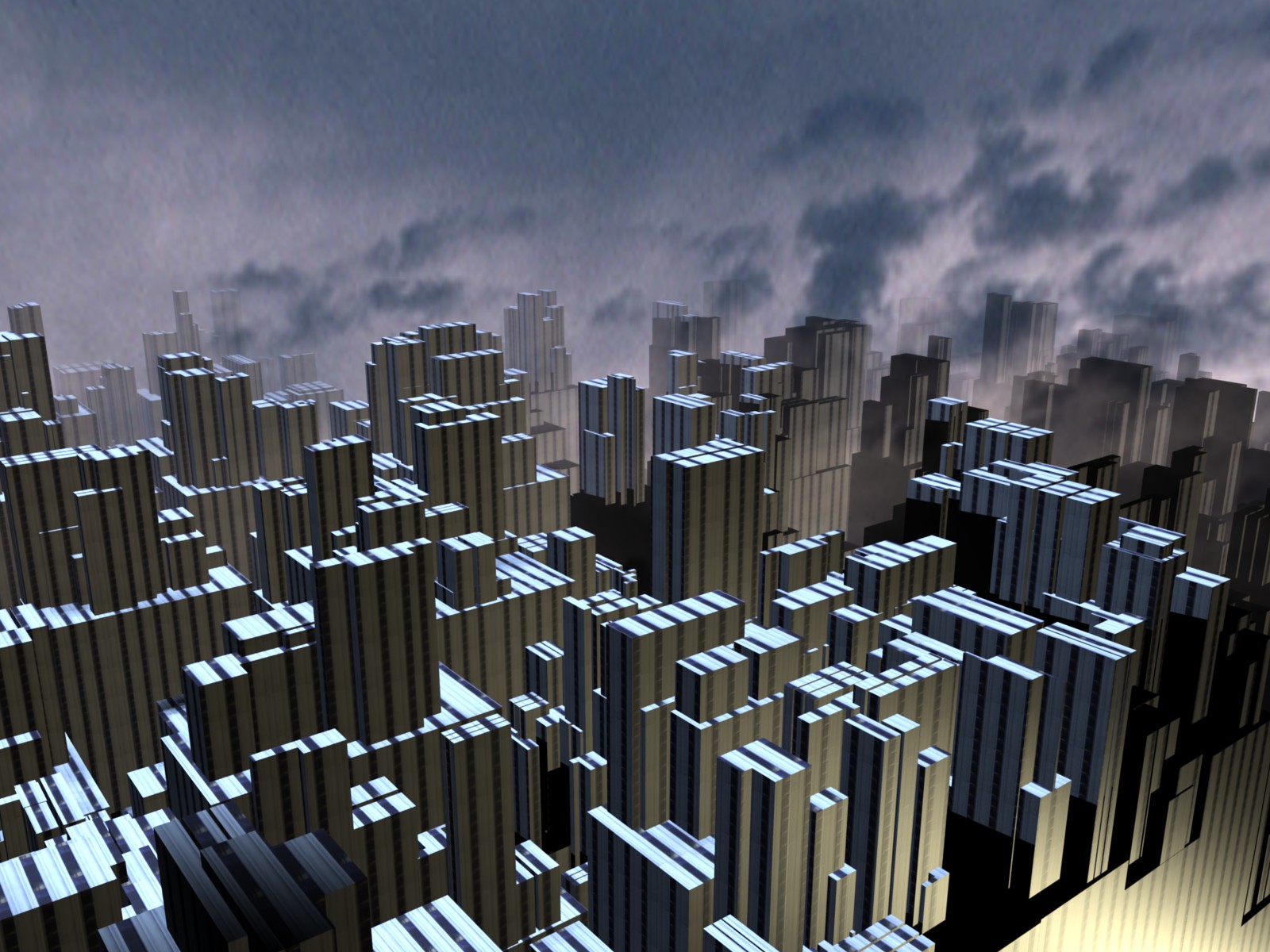 Si seleccionamos todas las caras de la ciudad en modo edición y luego aplicamos otro Discombobulator aparece un amasijo de torres en dos dimensiones.