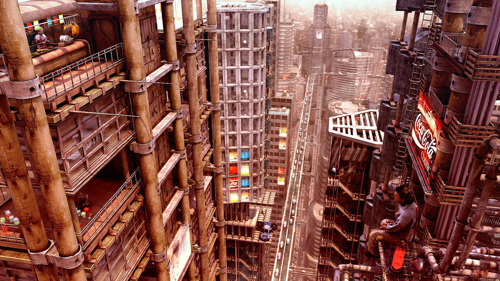Me recuerda a Blade Runner y, aunque es caótico el paisaje, si que me da tranquilidad, es curioso ¿no? Muy buen trabajo.