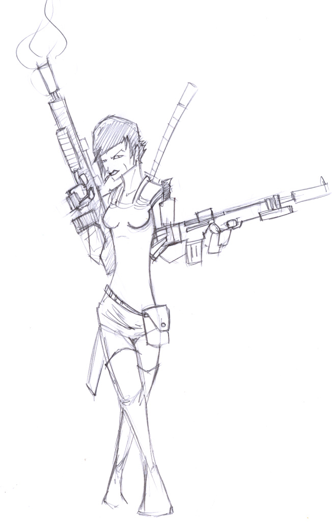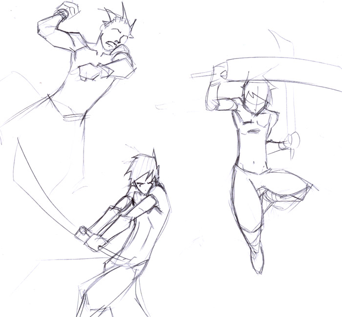 Posdata: añado 4 garabatos así hechos a velocidad máxima, con la tía no habré empleao ni 2 minutos. Y con el demonio con el tridente de findus, poco más. Creo que en lo más básico y cutre es donde mejor se ven los fallos (aparte de que no tengo ni zorra de hacer armas:p).