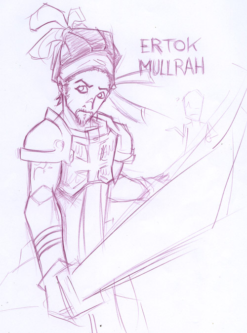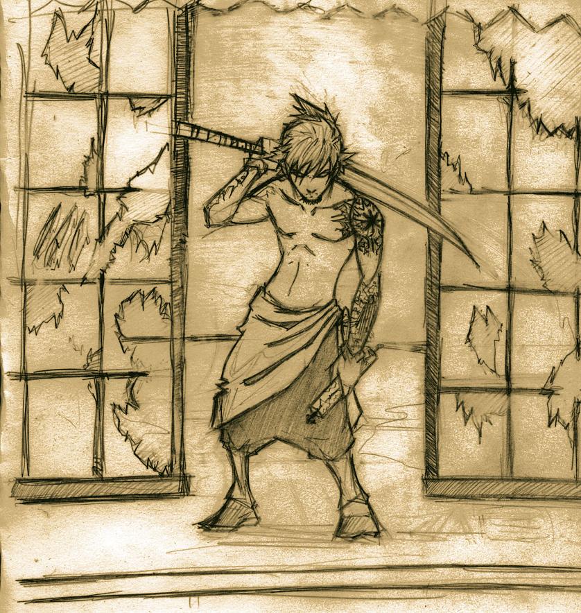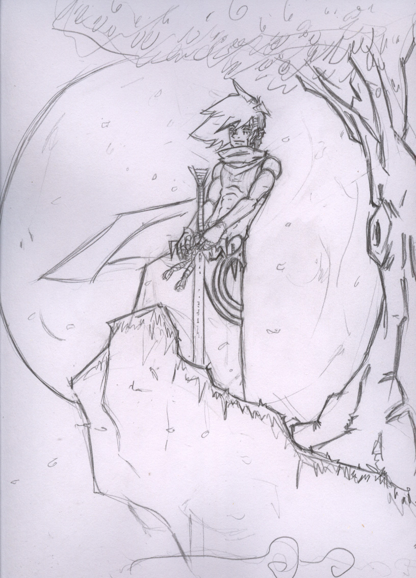 Muy bueno el dibujo a medio hacer del personaje con la espada. Me gusta la perspectiva del brazo, aunque estaría mejor acabado claro.