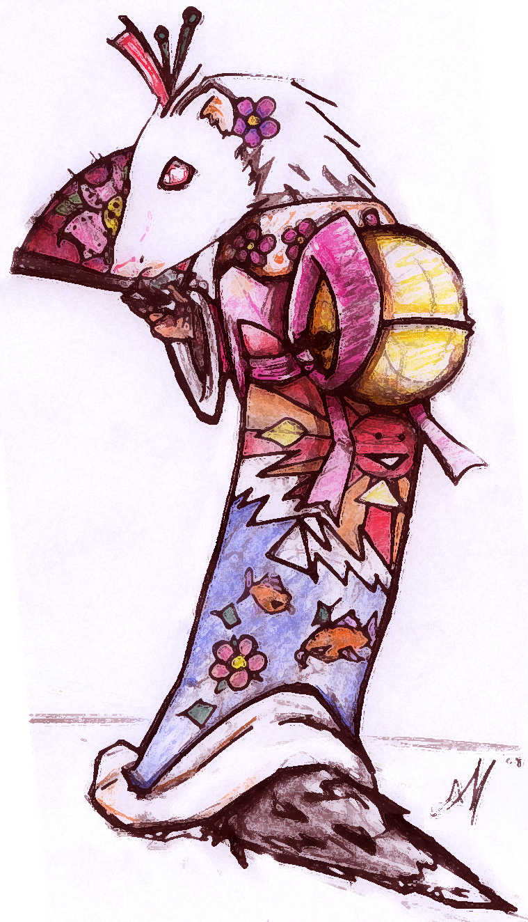 En cuanto a lo de las proporciones del tronco/piernas, creo que ya se de dónde te viene, haces las figuras humanas con las proporciones similares a la de los armiños, como los que colgaste hace tiempo, o cómo los gatos, por ejemplo, cuando se ponen de pies, por eso en humanos queda raro, pero mola tanto a la vez.