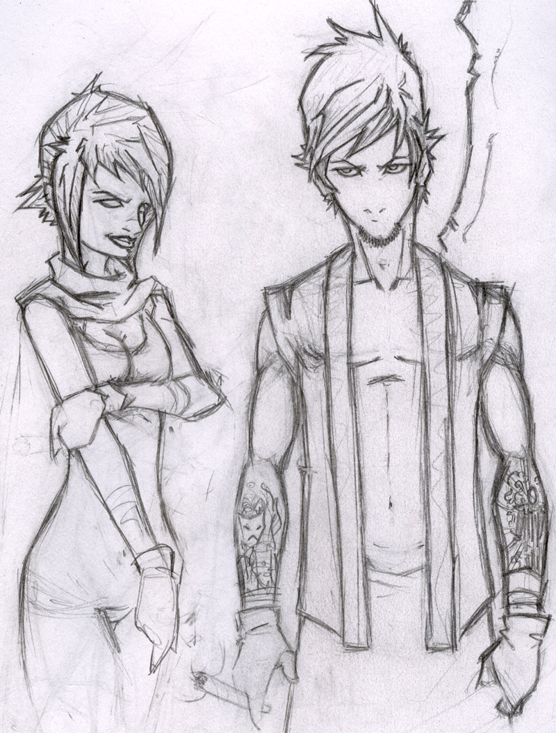 Yo no sé por qué te castigas tanto, los bocetos son muy buenos, y el resultado final es más que aceptable, es decir, que controlas ese tipo de dibujo. Quizás lo que quieres es cambiar, pero lo que te aconsejo con ese tipo de dibujo es que te lances a hacer cómic, intenta hacer algo futurista al estilo Blade Runner, creo que tus personajes pueden quedar muy bien.