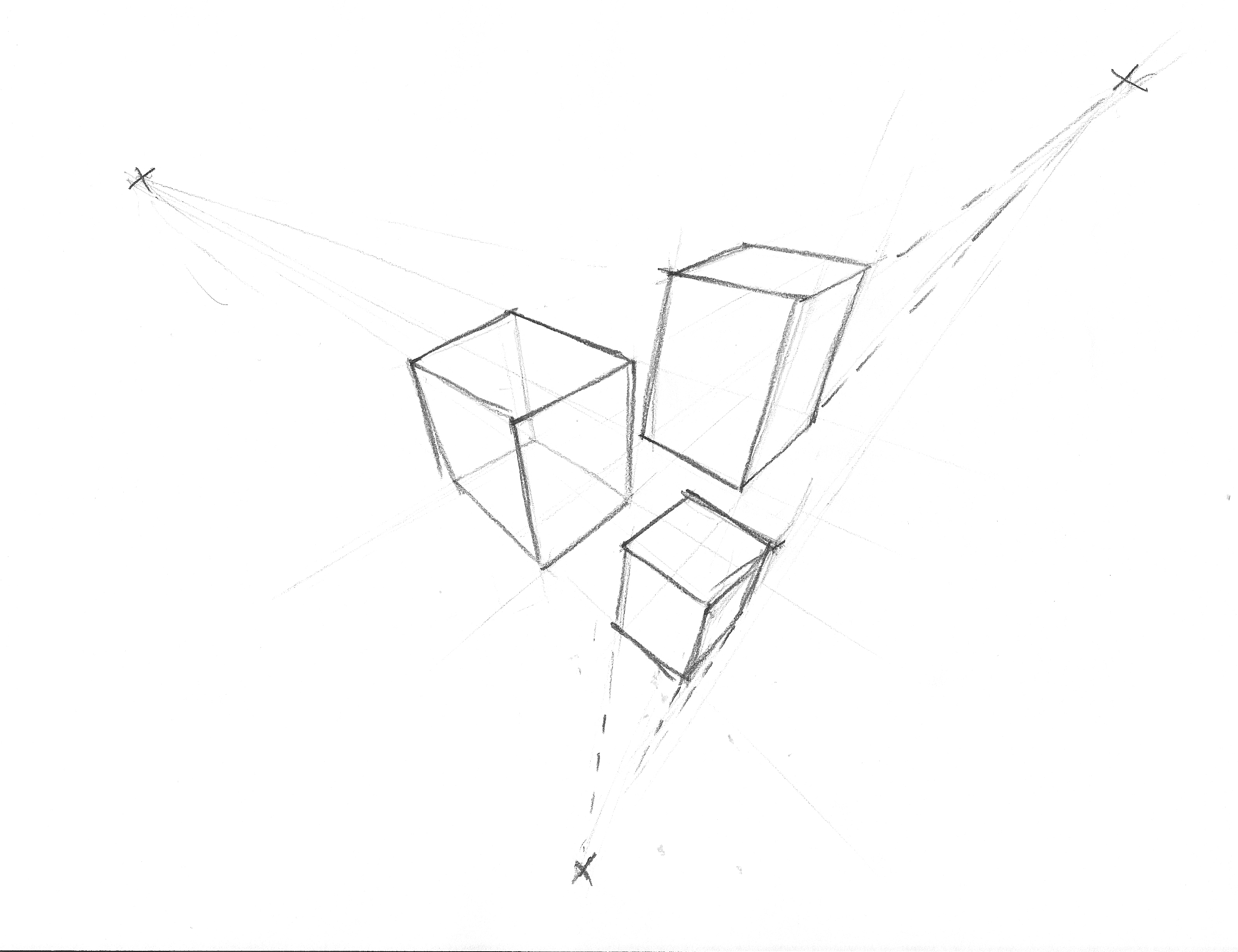 No sé si ya sabrás de esta técnica, pues aquí te va: es sobre tres puntos de fuga, esto permite más realismo y percibir el espacio como algo distante, ojalá te sirva.