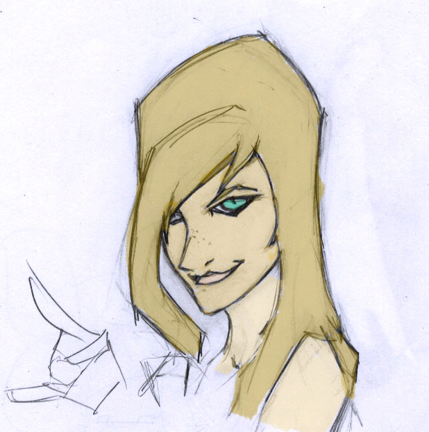 Y de tus dos personajes, me mola más la chavala, me gusta la línea que le has dado, esta suelta, si joven, y para dos minutos, pues que me dices, le das bien al portaminas ese, el diableete, lo veo más rígido, no más eso.