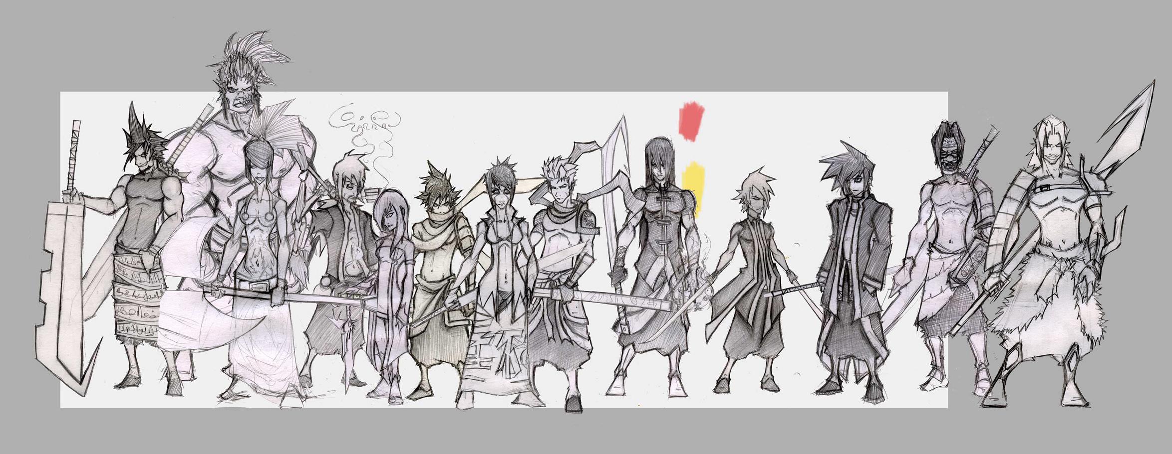 Esos si son progresos. Yo creo que al ritmo que vas lograras algo muy bueno en muy poco tiempo, con mi poca experiencia dibujando lo único que te puedo sugerir es que te amplíes más a los concept, podrías crear personajes más variados, porque son expresivos, pero a veces los veo demasiado parecidos (sin contar al protagonista), a veces variar las formas de las caras puede influir en el carácter del personaje transformándolo en algo nuevo.