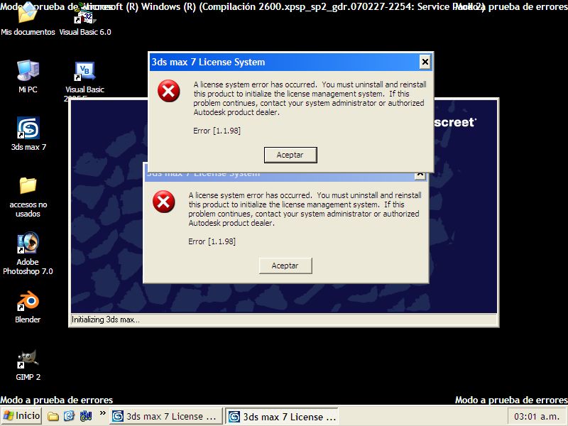 Pero bueno pasemos a los distintos problemas que he tenido con el 3ds Max y que a la gran mayoría del foro le han contestado de una manera muy poco informativa (desintala y vuelve a instalar. No es original lo que tienes. Nunca he tenido esos problemas. 3ds Max y el spx no se llevan etc ) en fin que casi siempre son esas cosas y resulta que los problemas persisten con estos síntomas: