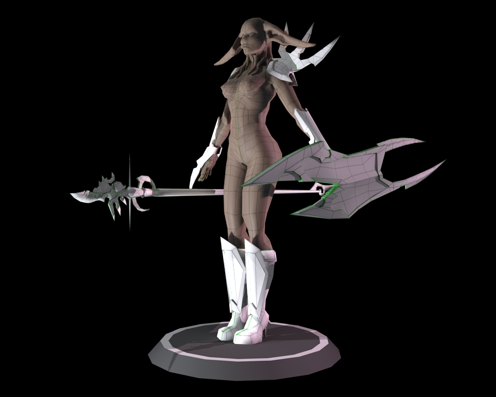 Muy chulo. Enhorabuena por terminarlo (de eso se trata). Yo emplearia esos polígonos que te han sobrado (el límite no estaba en 9000?) para redondear más algunas zonas en donde se notan demasiado los polígonos (el culo, los muslos).