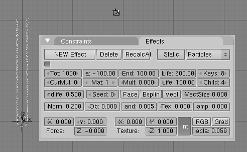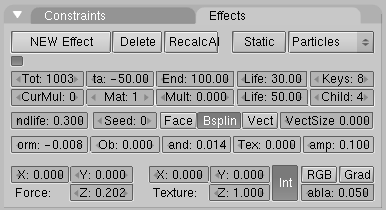 el número total de partículas indicadas en el botón tot: se crean uniformemente a lo largo de un intervalo de tiempo. Dicho intervalo esta definido por los numbuttons sta: y end:, que controlan el frame de inicio y el final en el que las partículas son generadas.