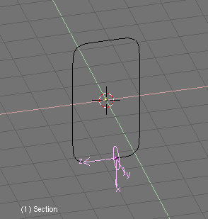 Luego rotaremos todos los vértices algunos grados. Seleccionaremos todos los vértices y los desplazaremos algunas unidades hacia la izquierda o la derecha algunas unidades en x (pero sin cambiar la ubicación en z). Podemos mantener presionada Control para mover y escalar con precisión. Salgamos de modo edición (sección cruzada trapezoidal, rotada y trasladada.).
