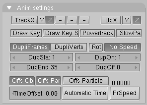 Seleccionaremos ahora el círculo, cambiaremos la ventana de botones al contexto objeto (via o con f7) y pulsaremos el botón dupliverts en el panel Anim settings (los botones de animación.).
