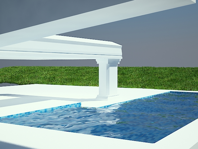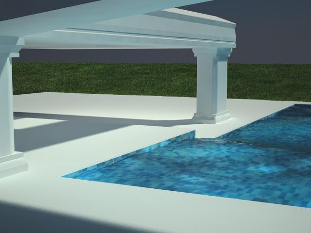 Hola. Desde mi punto de vista la escena se ve pobre al faltarle no sé, definir un poco más los materiales, agua, suelos, pilares ets.