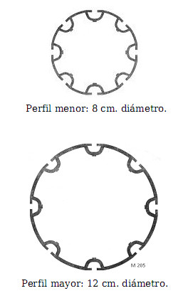 La longitud de los perfiles, es de 100 centímetros, pudiéndose colocar unos a continuación de los otros, tantas veces como sean necesarios. Los surcos que presentan a lo largo de su perímetro, sirven para fijar otros elementos. Por ejemplo, varillas convencionales (sección rectangular), puntos de iluminación, pancartas, etc. Para asegurar la estabilidad de las estructuras, los tramos inferiores se unen a bases circulares de 48 centímetros, de diámetro. Bien. Ahora vamos a utilizar como plantilla las imágenes (en formato.jpg) de los perfiles para obtener un modelo 3d en Blender. ¿cuántos puntos necesitamos para el perfil menor? Contamos los vértices: nos salen 128 puntos en total. Podríamos crear un polígono de 128 puntos y adaptarlo al dibujo. O pensar en algún método para trabajar menos. ¿hay un módulo más sencillo? Veamos. Podríamos hacer solamente está forma, que va desde este hueco hasta esta arista. Si lo repetimos 8 veces, girándolo naturalmente, obtendremos la forma completa. Vamos a ahorrar tiempo, y a obtener una figura geométrica exacta. Lo primero que tenemos que hacer es cargar la imagen del perfil como fondo de la vista top, en Blender. Esto se hace desde el menú view / background image / use background image / icono - Se navega por el disco y se escoge la imagen. Es conveniente, que la imagen sea pequeña. El rendimiento del programa se vería muy afectado si empleamos una imagen grande, si bien el comportamiento de Blender es bastante bueno en este aspecto, comparado con otros programas. En la parte inferior de la ventana background image, hay 3 botones, size, x offset e y offset que sirven para escalar y desplazar la imagen de fondo. De momento, nos vale como esta.