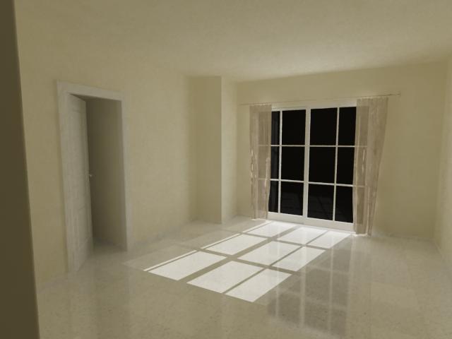 Hola a todos/as. Como podréis ver en la imagen que adjunto, el suelo refleja la cristalera blanca, pero también refleja negros los huecos de los cristales.