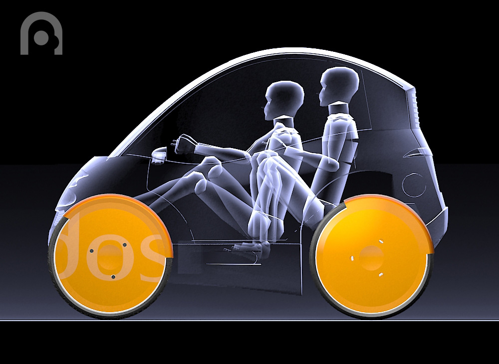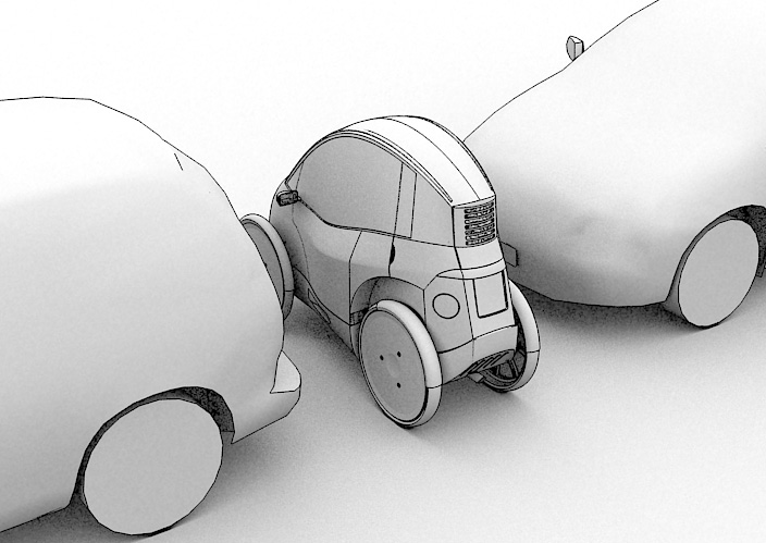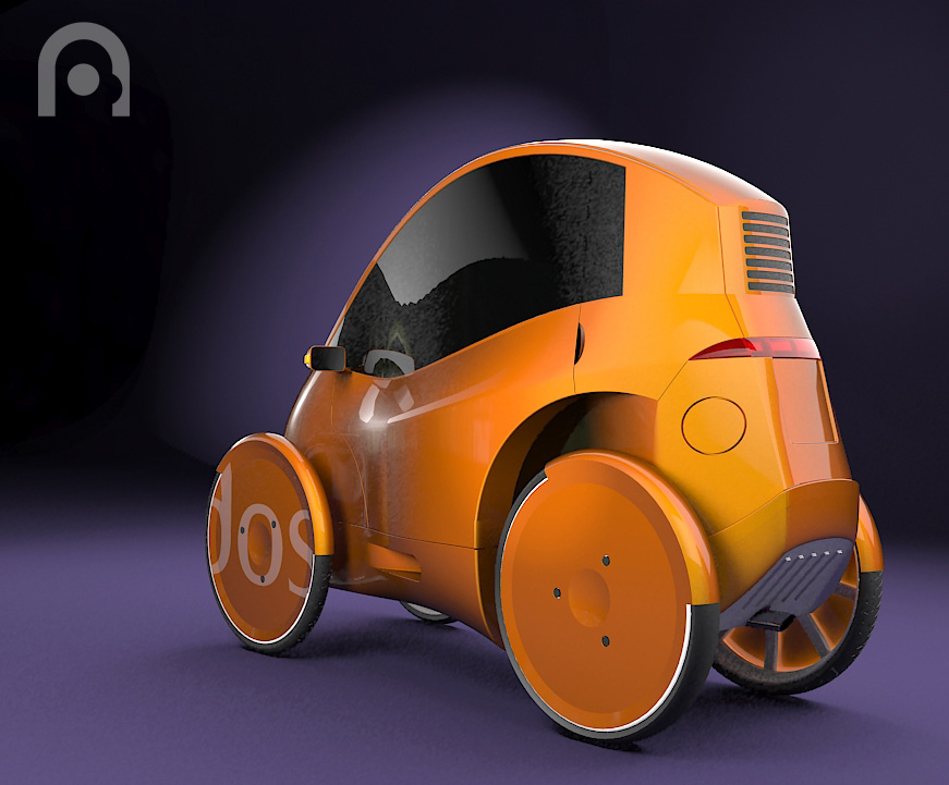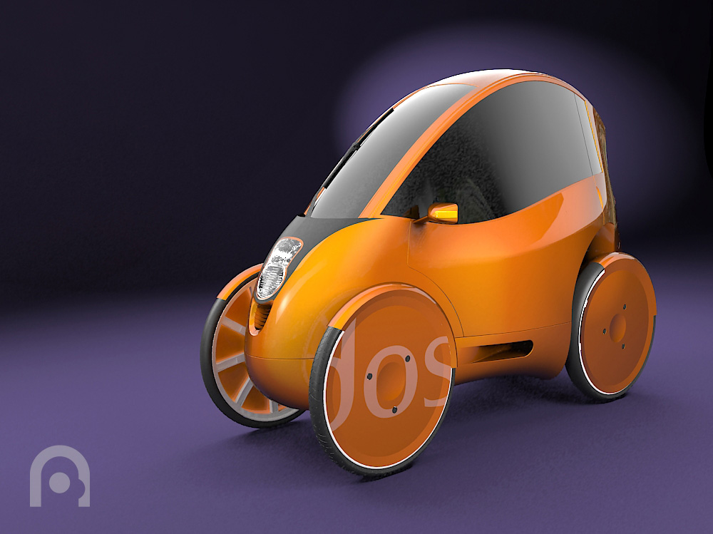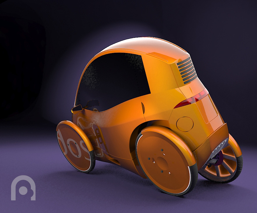 El modelado está muy bien, y el diseño bastante original. En cuanto a la funcionalidad, no lo tengo muy claro. Yo creo que no podrás girar. La inclinación no es suficiente para girar, tendrías que darle más anchura al tren delantero para que pudieran tener algo de ángulo de giro.