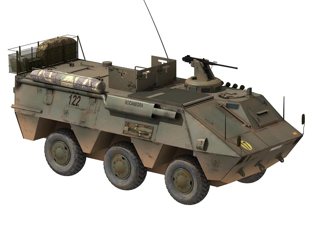 Aquí ahora lo he mapeado con bitmaps a mi estilo y usando el viejo max 3.1 para no degradarlo mucho (al fichero original, conste). Le he arreglado algunos defectos y he empezado a usar el tipo de mapeado y desajuste del Unwrap, para meter varias piezas en un mapa, como la tc-3 y la peseta del 120 milímetros que se ve arriba. Ya veremos cómo lo hago con el Piraña en el 3ds Max 8, que no sé aún cómo se hace, pero no creo que difiera mucho y seguro que es más capaz que éste.