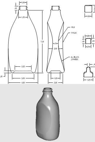 ahora la botella es un sólido cerrado. Lo que hay que hacer a continuación es redondear los bordes puntiagudos añadiendo un radio suave entre los bordes.