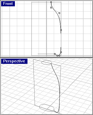 2. dibuje una curva mediante puntos de control para definir el perfil de la botella en la vista front.