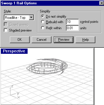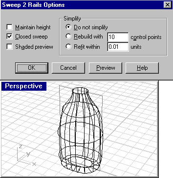 5. en el cuadro de diálogo de swep 2 rails options, haga clic en ok.