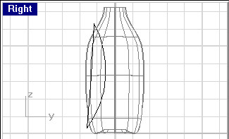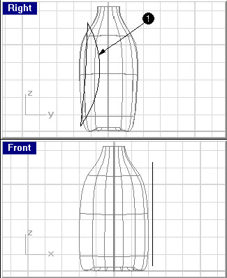 2. en la vista de la derecha right, dibuje dos curvas que se aproximen a la forma del borde y de la mitad de la botella.