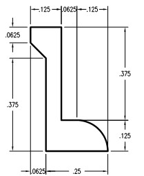 4. utilice el dibujo técnico para trazar las dimensiones correctas. Consejo: cuando esté dibujando segmentos de línea, puede utilizar los osnaps, las restricciones de distancia y el Ortho para dibujar con mayor precisión. Por ejemplo, para la primer línea escriba.5,7.25 para el punto de inicio y luego simplemente escriba.25 para restringir la línea a.25 unidades. Active el Ortho y arrastre la línea hacia la derecha. La línea se parara a las.25 unidades desde su inicio. Para la línea vertical de la izquierda, utilice el Osnap end para seleccionar el final de la primer línea, escriba.375 para restringir la distancia y arrastre la línea hacia arriba.