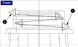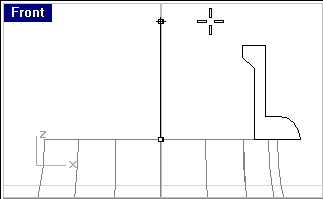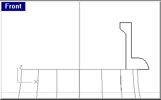 2. en la vista front, use el comando line segments y un arco para crear una curva de perfil para el exterior e interior del cuello de la botella.