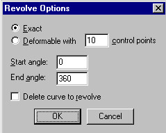 5 en el cuadro de diálogo de revolution options, haga clic en delete curve todo Revolve y seleccione ok.