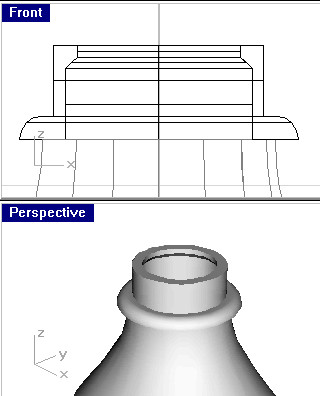 para crear el cuello de la botella, tendrá que revolucionar una curva de perfil para crear una superficie y luego añadir la rosca.