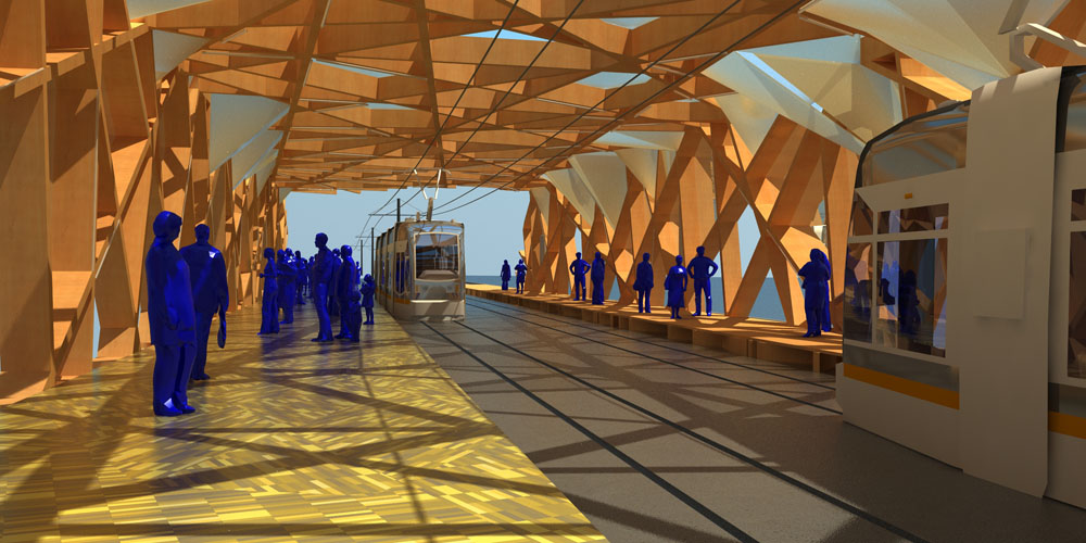 Otra tanda de imágenes preparadas para un concurso realizado con el estudio xpiral de Murcia. En este caso, se trataba de trabajo la parada de tranvía que se construirá en la universidad de Alicante: