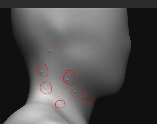 Hola. Pues veréis, resulta que cuando uso el pincel de Smooth en ZBrush sobre la malla subdividida y lo paso por encima de un polígono de 3 vértices, o sobre un vértice con 5 aristas o más, me crea unos bultos muy feos. En la imagen lo podéis ver.
